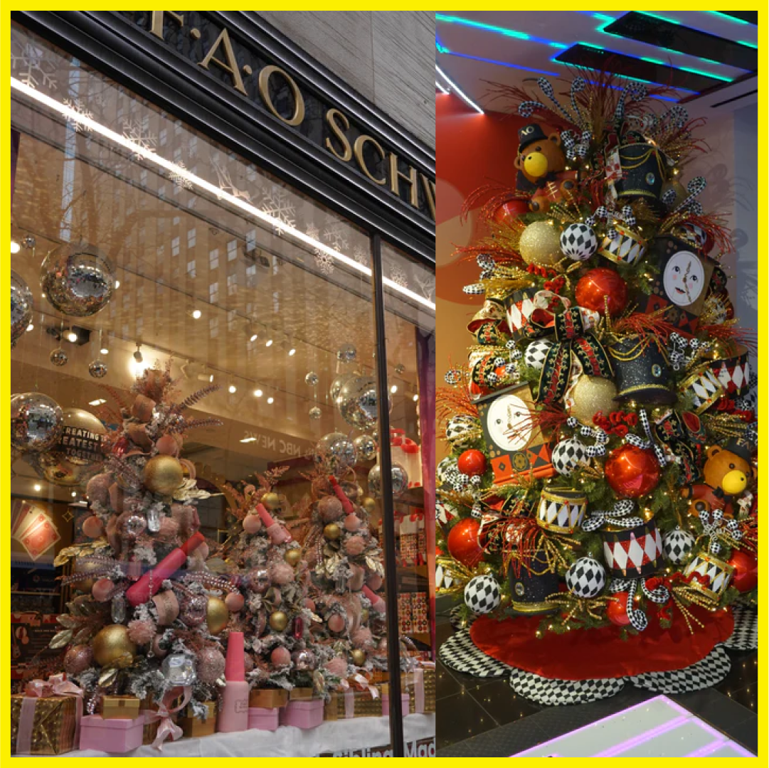 FAO Schwarz has invited Sami to decorate their iconic Rockerfeller Center store location two years in a row. Sami’s first FAO tree was designed to commemorate FAO’s 160th anniversary. For Christmas 2023, Sami opted for a trio of Christmas trees adorned with large custom made pieces that were exact replicas of their newest makeup toy kit.